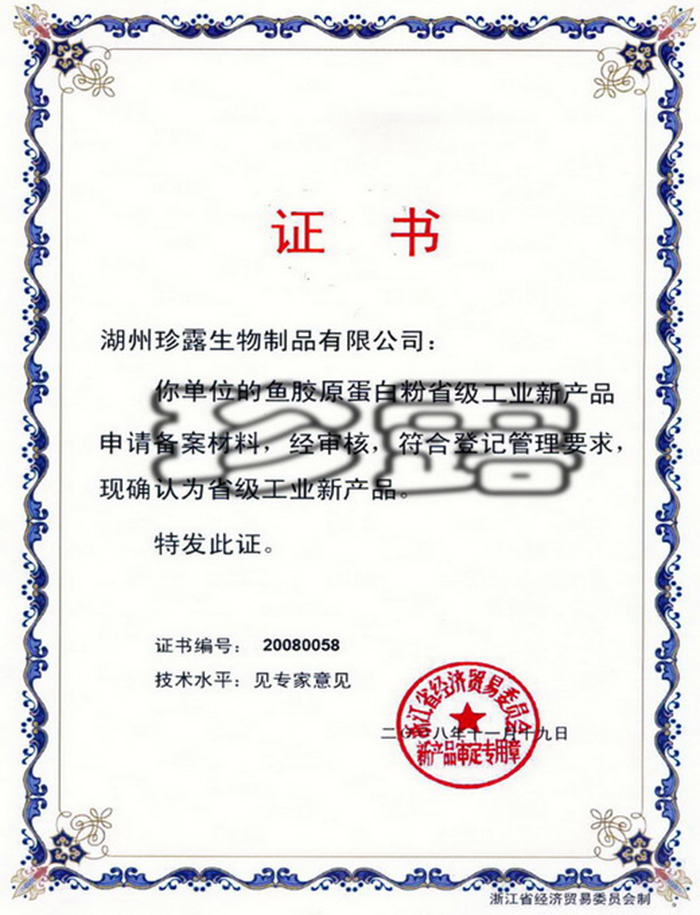 浙江省工業(yè)新產品(魚膠原蛋白粉)